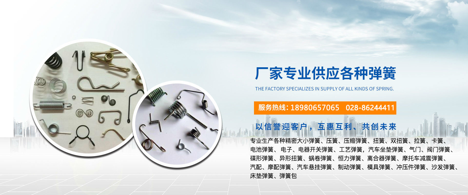 成都澳龍彈簧制造有限公司是一家專業從事各種大小彈簧加工、生產、銷售、 設計 、定做各種異形彈簧、專業生產各種精密大小彈簧、壓簧、壓縮彈簧、扭簧、雙扭簧、拉簧、卡簧、電池彈簧、 電子、電器開關彈簧、 工藝彈簧,汽車坐墊彈簧、氣門、閥門彈簧、碟形彈簧、異形扭簧、蝸卷彈簧、恒力彈簧、離合器彈簧、摩托車減震彈簧、汽配、摩配彈簧、汽車懸掛彈簧、制動彈簧、模具彈簧、沖壓件彈簧、沙發彈簧、床墊彈簧、彈簧包系列等等,并承接各種小五金、沖壓件機械及特定、不規則彈簧的加工服務。